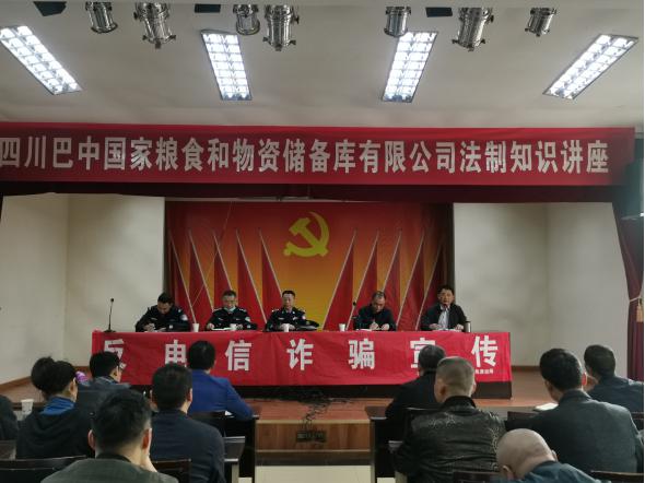 為進(jìn)一步增強(qiáng)企業(yè)職工法制觀念,規(guī)范依法從業(yè)行為,2021年3月31日上午,四川巴中國(guó)家糧食和物資儲(chǔ)備庫(kù)有限公司在大會(huì)議室舉辦了法制知識(shí)專題講座。現(xiàn)場(chǎng)邀請(qǐng)了巴州區(qū)公安分局回風(fēng)派出所民警到場(chǎng)進(jìn)行了反電信詐騙暨法制知識(shí)宣講。
